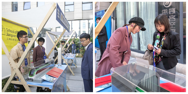 师生的科创产品吸引了众多嘉宾驻足观看,受到一致好评。通过“市集”的开放形式,展现我院师生专业风采的同时,实现了“政产学研”的跨界交流、智慧碰撞,为无锡科技创新的高质量发展贡献青春力量。
