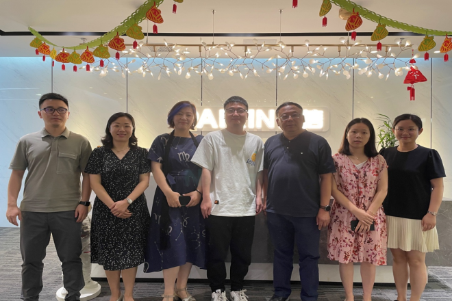 党委书记邱建平、党委副书记王晖、副院长潘春宇、教工党支部书记吴祐昕教授、分团委书记吴雨琛以及辅导员马倩如一行分别前往拍信科技公司和麦梯定制公司进行走访。