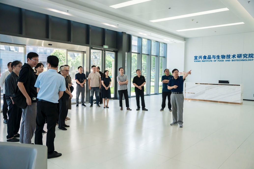 党委书记邱建平、院长魏洁、党委副书记王晖、副院长廖曦、社科处副处长邓嵘、中国紫砂艺术设计研究院院长王峰、过伟敏教授、王强教授、陈原川教授以及中国紫砂艺术设计研究院的相关老师共同参观学习,中国工程院院士、江南大学未来食品科学中心首席科学家陈坚教授、江南大学副校长堵国成教授出席交流会,并带领全体与会人员共同参观了宜兴食品与生物技术研究院。