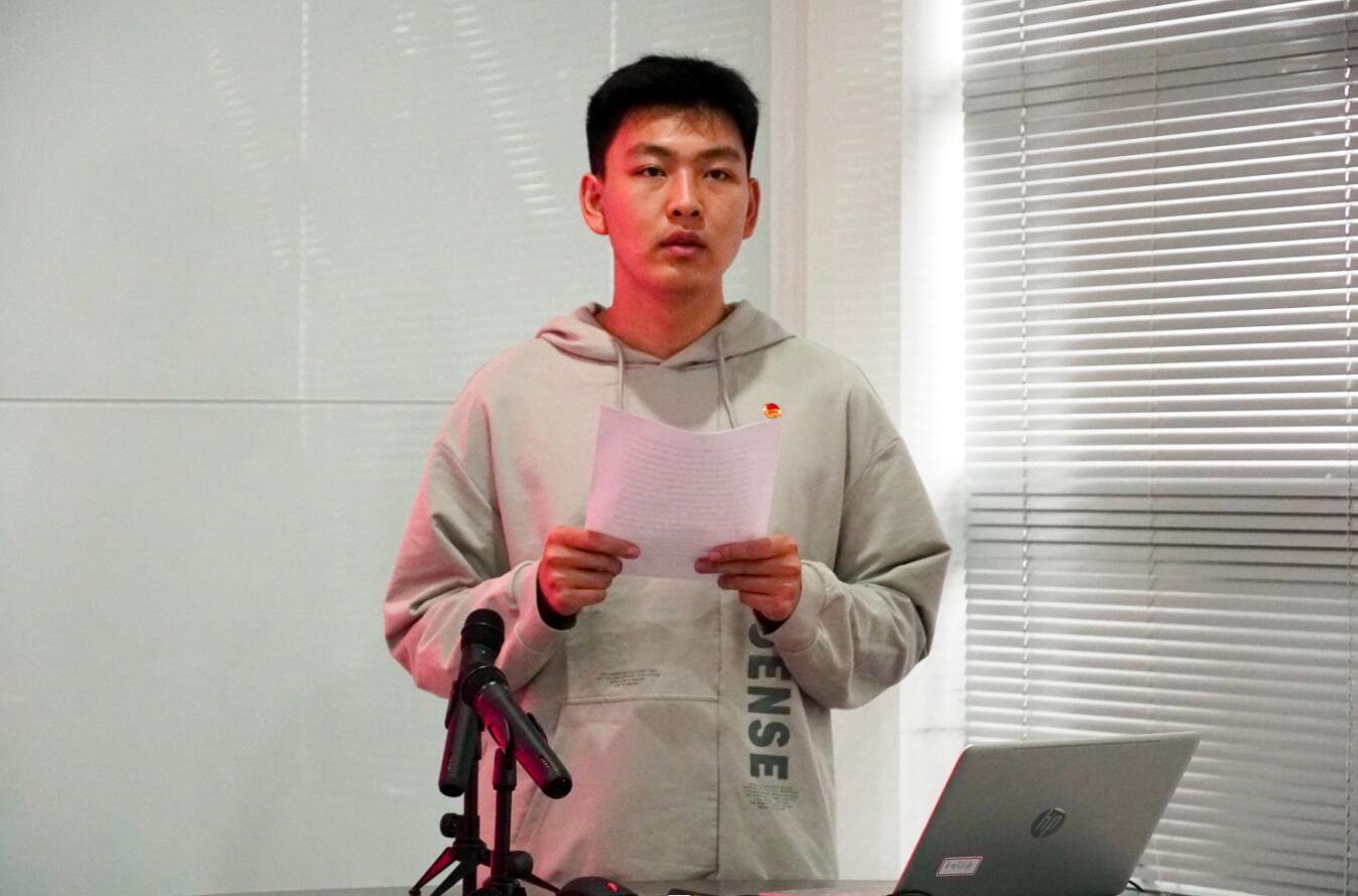 环艺2204班来自溪苑88-513宿舍的孙博瑞同学,作为第二批学生代表发言。他表示,感谢学校和学院,让来自四个不同省份的他们相聚于“汇贤居”宿舍,成为了彼此朝夕相处的家人。汇贤居是一个学习室,让兴趣各异的他们互相学习,彼此监督,共同进步,汇贤居也是一个研讨室,让同是班委的他们互相出谋划策,分享管理经验;更感谢学校和学院党委安排了党员教职工老师对接宿舍,给了他们很多专业性的建议和生活上的指引,在党员老师讲解了许多党团知识后,他们更是进一步坚定了入党的决心。最后,他说到:“笃学尚行,止于至善。未来我们会更加努力,经营好宿舍,带领好班级,并不断提升自己,正如在开学典礼时邱书记对我们的期许:做新时代的青年人,为新时代设计,设计强国有我!”