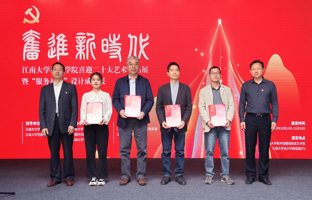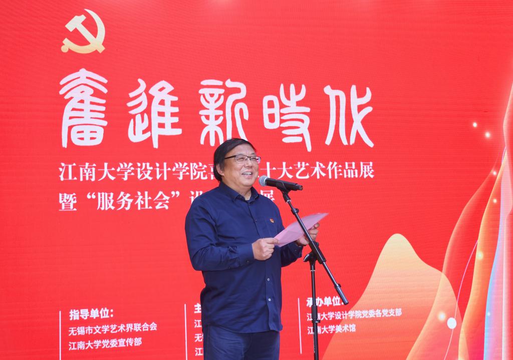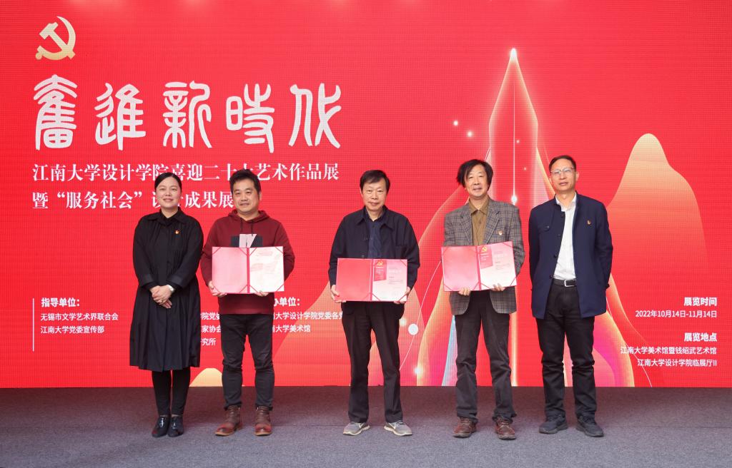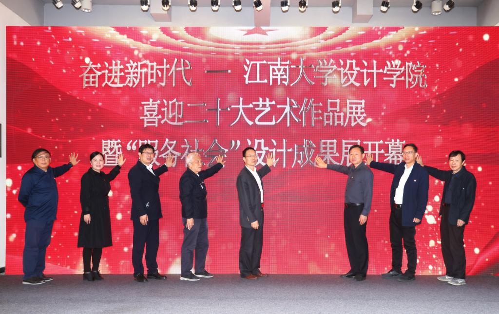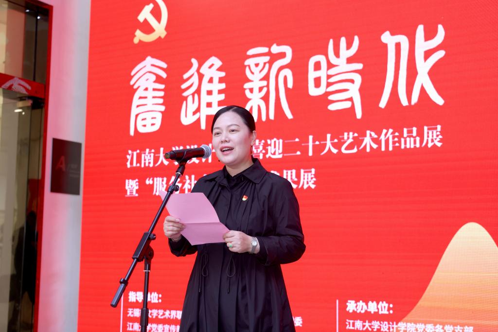 喜迎二十大艺术作品展暨“服务社会”设计成果开幕式于江南大学美术馆举行。江南大学党委常委、副校长堵国成,无锡市文联党组书记、主席杨建,江南大学党委组织部常务副部长方正泉,江南大学体育博彩网站