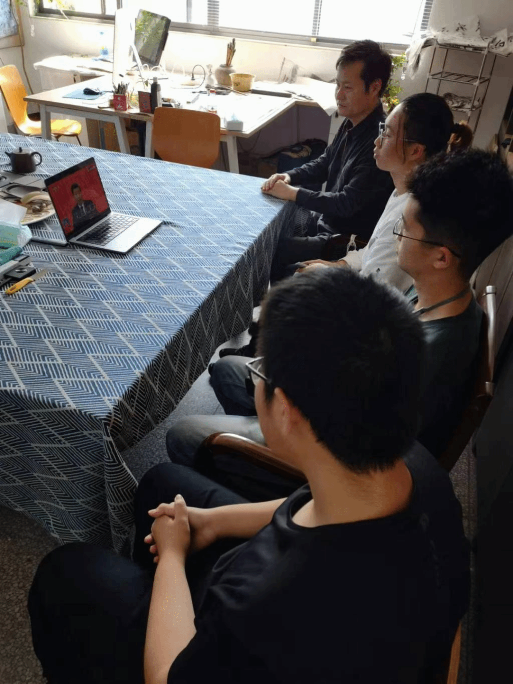 邱建平书记与学生党员共同线下观看
