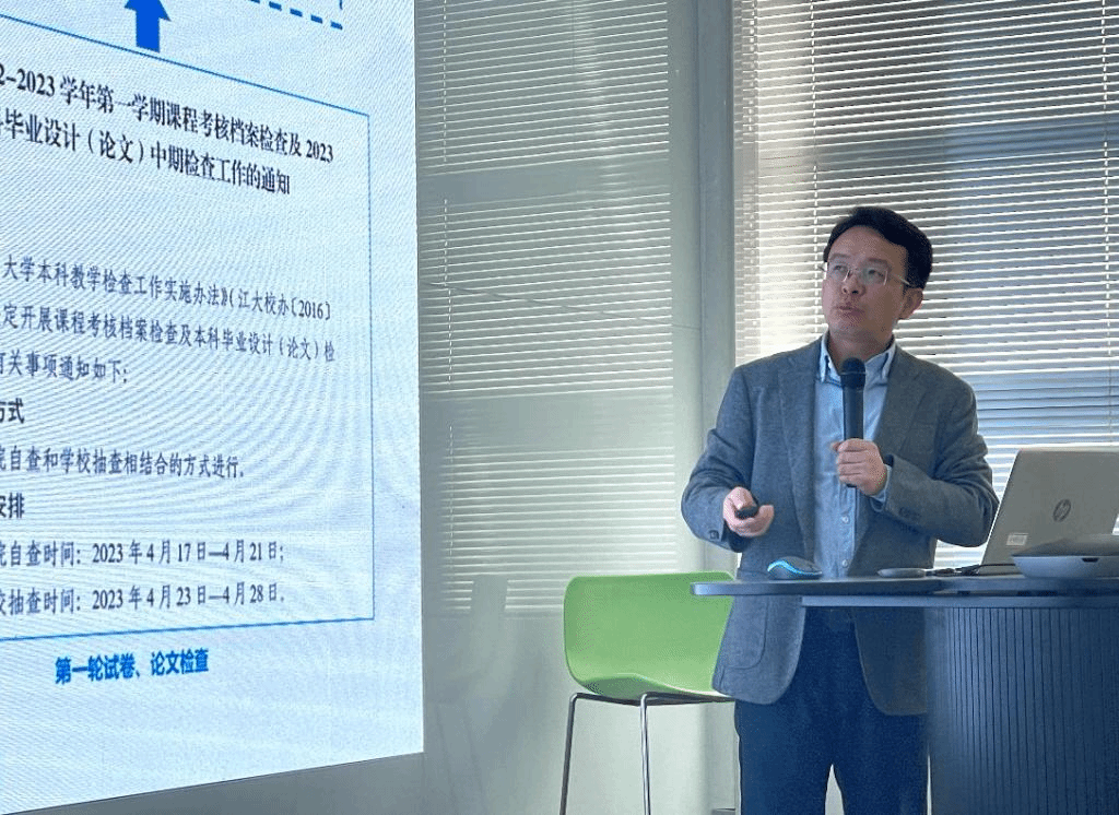 李兆丰就新一轮本科教育教学审核评估实施重点及学院迎评工作重点进行了具体宣讲。他指出,质量保障体系是第一类评估审核的重点,学院应充分了解本次审核评估的各关键环节,在组建专班的基础上,积极开展自查,形成问题清单,做好撰写自评报告,形成支撑材料,支撑教育部线上线下审核评估,并指定整改方案,提交整改报告等各项工作。同时,就迎评工作重点及要求做了细致的分析和解读。