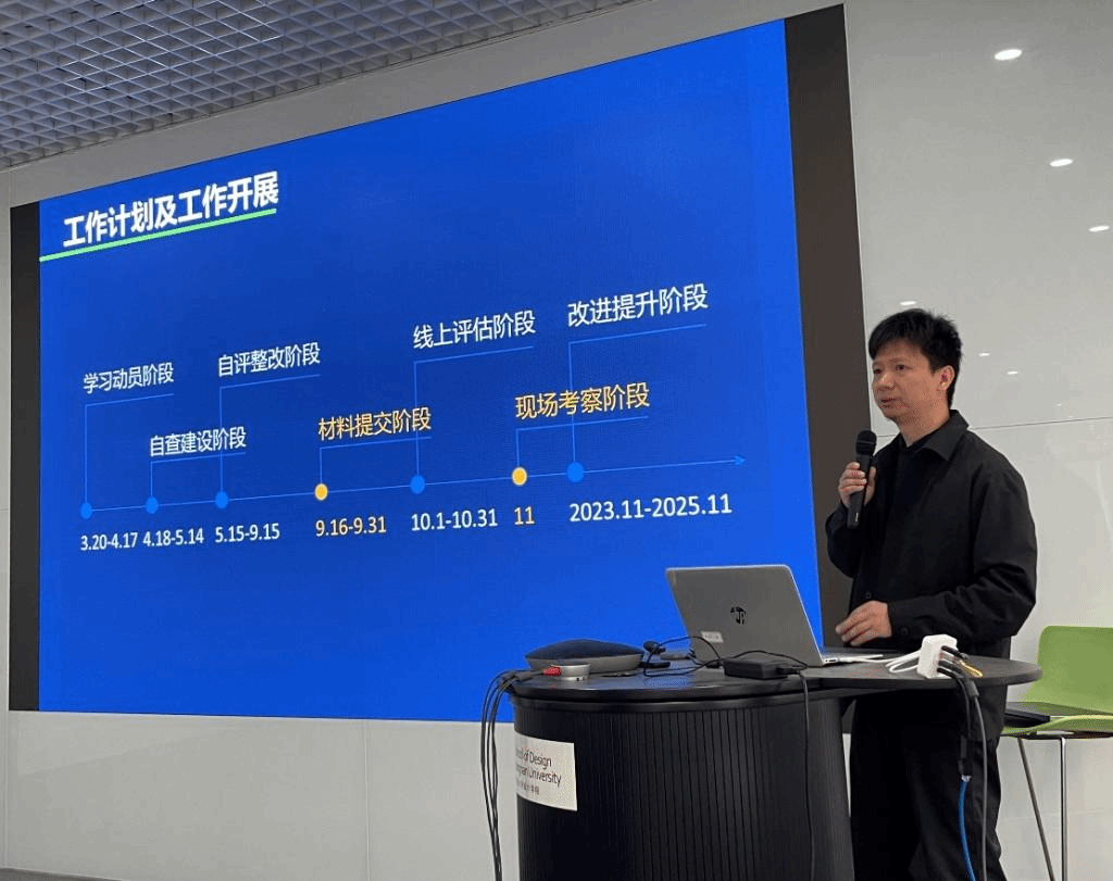 审核评估工作中所做的前期准备和进展的同时,对学院下一步工作提出了要求:要进一步认识评估工作的重要性,高度重视,按照时间节点把工作细节落实好,定期组织讨论,扎实推进工作进展;要查摆问题,提出整改举措,做到从上到下齐心协力,将评估工作融入到本科教育教学的全过程,以评促建、以评促管、以评促改、以评促强,积极推动设计学科的高质量发展。