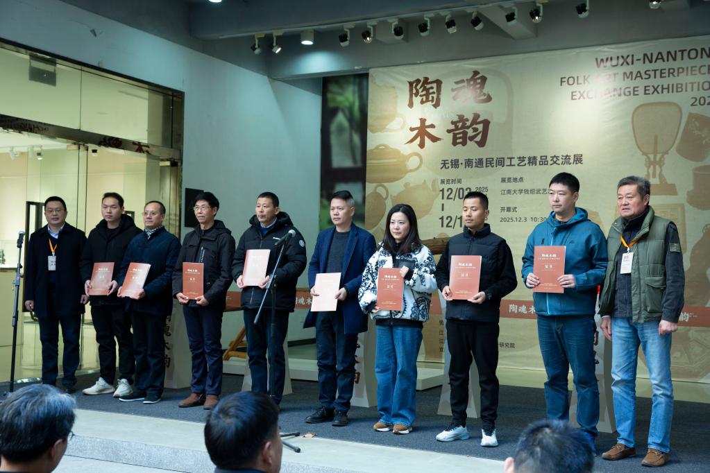 、江南大学中国紫砂艺术设计研究院、宜兴紫砂九隽陶艺有限公司协办的“陶魂木韵”——无锡·南通民间工艺精品交流展,在江南大学钱绍武艺术馆隆重开幕。中国民间文艺家协会副主席、江苏省民间文艺家协会主席吴元新,江南大学党委宣传部部长李佳敏,无锡市文联主席娄子丹,南通市文联党组成员、副主席宋红鑫,江南大学体育博彩网站