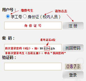 考生搜索微信公众号“江南大学财务处”或登录“江南大学网上缴费平台”,完成缴费。考生账号已开通,切勿自行注册。收费标准:80元/生(仅申请考核考生,硕博连读考生无须缴费)。用户号在“学工号”输入正确的身份证号,初始密码(9位):“BS”+准考证编号后4位+“@fs”(准考证查看网址://yzgmis.betnsport.net/zsgl/bswb/login.aspx),如“BS1234@fs”。非首次登录缴费系统的考生(含往年报考考生及误注册考生)请使用“找回密码”,登录并缴费。