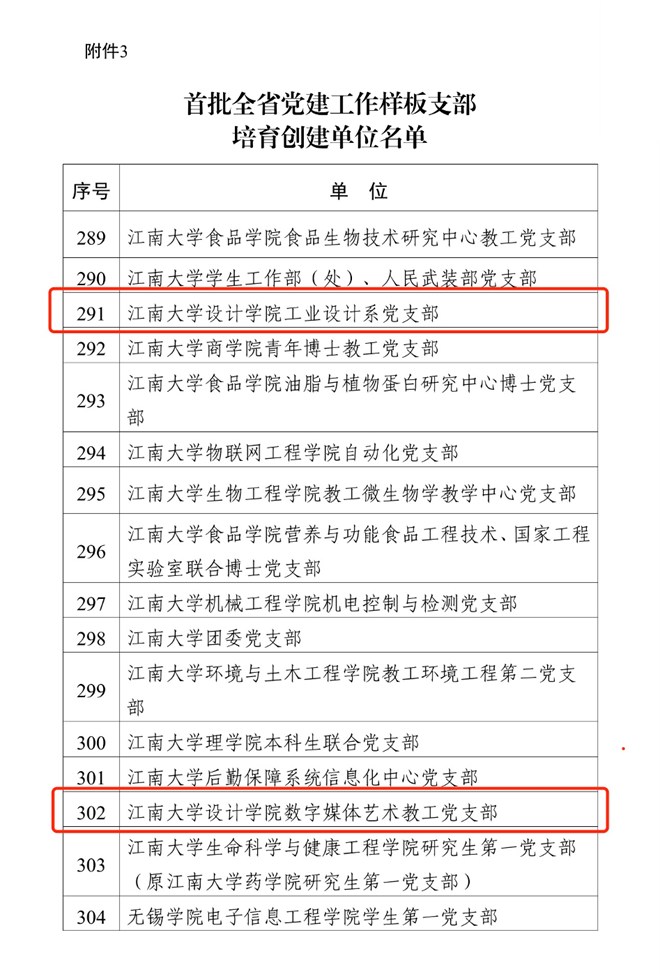 工业设计系党支部、数字媒体艺术教工党支部入选“首批全省党建工作样板支部”培育创建单位。